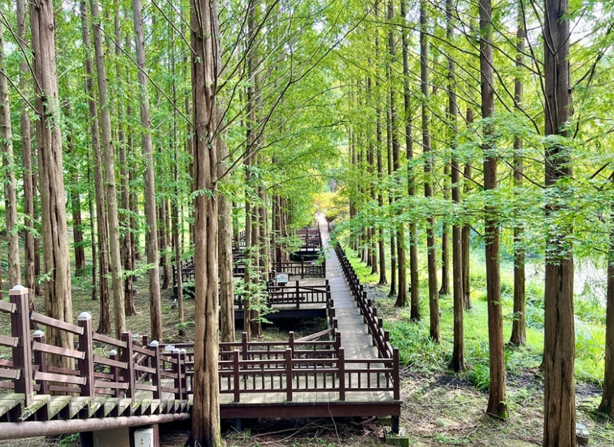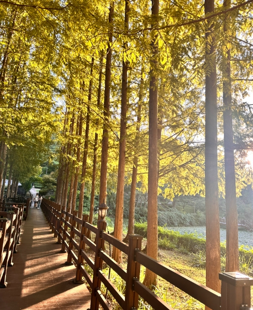 나무 곳곳에 벤치가 있어 안동시민은 물론 여행객들에게도 사랑받는 휴식처로, 곳곳에 숨겨진 포토존에서 사진을 찍는 것은 마치 모네가 된 듯한 착각을 불러일으킵니다. 또한 안동댐까지 둘러싼 산책로와 월영공원까지 이어지는 수변에는 데크가 있어 편안하게 걷기 좋은 코스입니다.