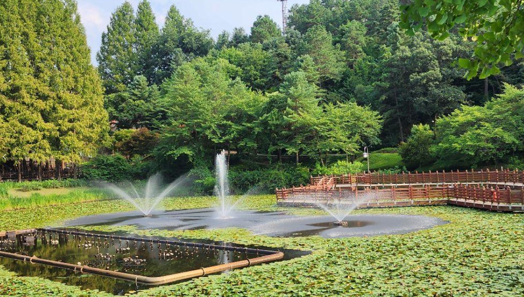 작은 연못을 따라 메타세쿼이아와 전나무가 자리 잡고 있으며 연못의 돌다리와 산책로가 어우러져 이국적인 풍경을 연출하고 있어 한국의 지베르니라고 불립니다.