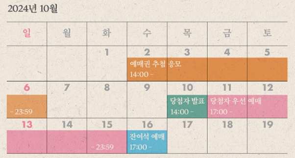 - 예매일정 : 2024년 10월 11일 17:00 ~ 2024년 10월 15일 23:59분까지