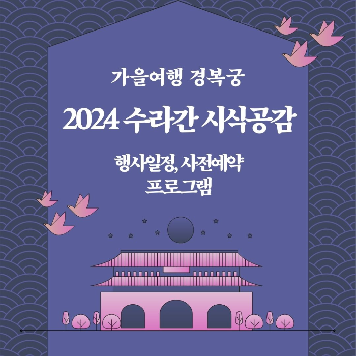 - 기간 : 2024년 10월 23일(수) ~ 10월 31일(목) - 경복궁 휴궁일(화)은 행사가 쉽니다.