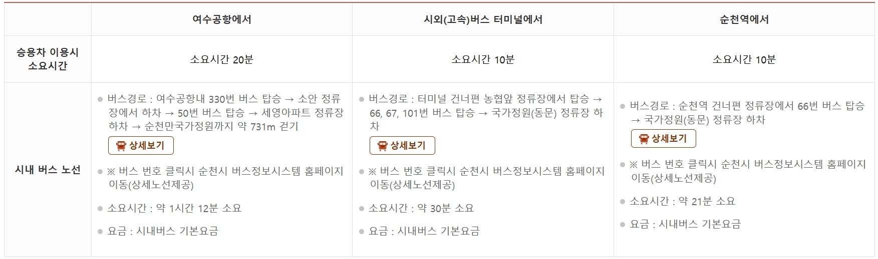 - 동문주차장 : 전남 순천시 국가정원1호길 162-11 남도 농특산품관 동문