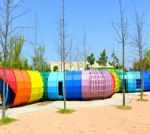 ● 꿈뜰정원 : 아이들이 마음껏 뛰어놀 수 있도록 설계된 정원으로 순천만을 대표하는 생물 중 갯지렁이를 형상화하여 만들어진 공간입니다.