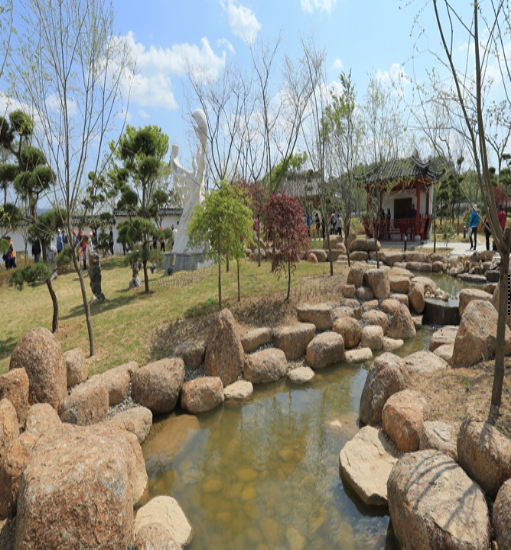 중국정원은 중국판 로미오와 줄리엣이라고 할 수 있는 양산백과 축영대의 이루어질 수 없는 사랑 이야기를 담은 정원입니다. 정원의 구성은 구릉과 물, 다리, 돌, 나무 등을 이용하여 전통 조경 기법을 잘 활용했으며 정자와 연못, 교량 등이 어우러진 중국정원에서 이루지 못한 사랑을 나눈 두 젊은이의 모습을 떠올려 보는 재미도 느낄 수 있습니다.