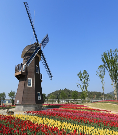 순천만국가정원에 찾아오는 모든 이들에게 생태 수도 순천의 봄을 알리는 공간으로 네덜란드의 상징인 튤립뿐 아니라 풍차와 나막신 조형물(klompen)이 설치되어 국가정원 내에서도 포토존으로 인기를 끄는 대표적인 장소입니다. 또한 네덜란드 출신으로 우리나라 국가 대표 축구팀을 지도하며 2002년 월드컵 4강 신화를 이끌었던 히딩크 감독이 한국을 사랑하는 마음을 담아 심은 '히딩크의 희망나무'로 불리는 호두나무도 볼거리입니다.