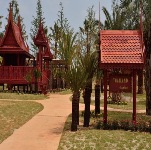 워싱턴야자, 코코스야자 등의열대 수목이 식재되어 있어 이국적인 분위기를 연출하는 장소입니다. 태국 정부와 순천시 간에 상호 교차 정원으로 조성된 태국정원은 지구온난화 및 기후 변화 등에 관한 이슈를 태국의 다모작 농업을 통해 경감하고 극복하고자 하는 모습을 표현하고 있습니다. 태국정원을 찾는 이들에게 낙천적이며, 지혜롭게 세상을 바라보기를 바라며 태국 전통의 건축물인 살라타이, 아름다운 연못, 대나무 구조물이 아기자기하게 조성된 공간입니다.