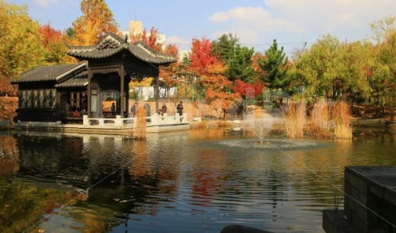 월화원은 이국적인 분위기에 단풍의 색감이 더해지며 보다 아름다운 분위기를 연출하는 곳입니다. 실제 광동지역의 전통 양식에 따라 조성된 중국식 정원으로 모든 곳이 포토존이 되어줍니다.