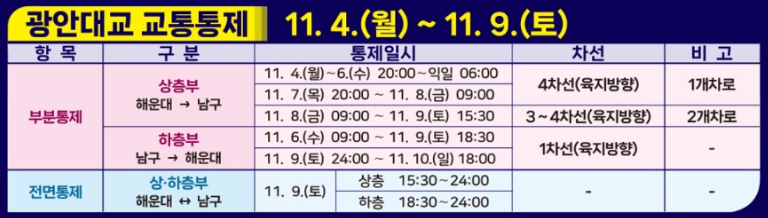 - 일반버스 : 38, 41, 42, 62, 83, 83-1, 108(광안리해수욕장 정류장 하차)