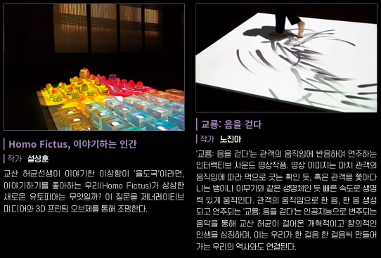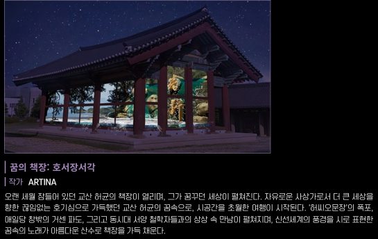 시공간을 초월해 오늘날 우리에게 진정한 유토피아의 의미를 묻는 교산의 이상향이 미디어아트를 통해 현실에 구현됩니다.