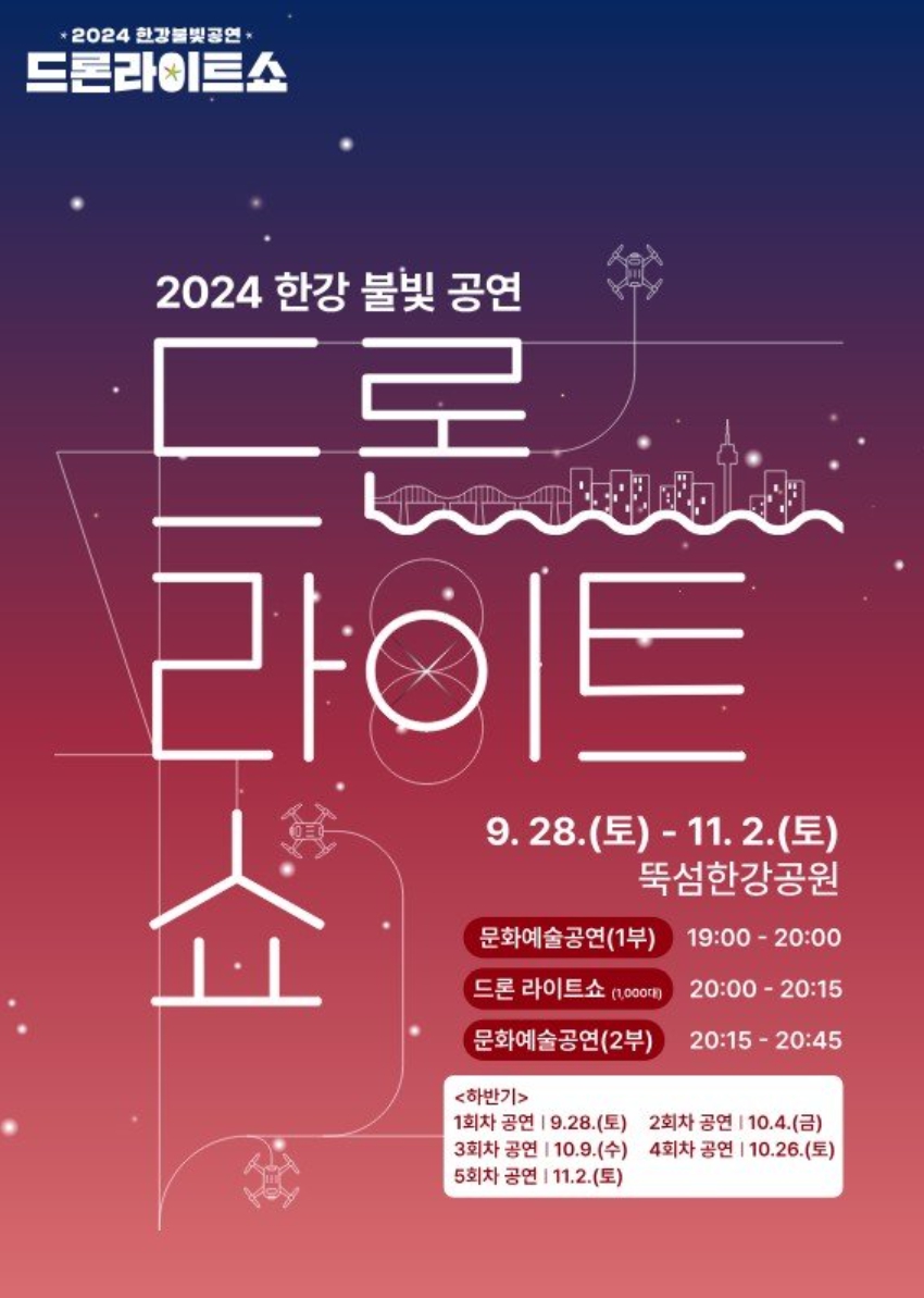 서울 한강에서 2024 한강불빛공연 드론라이트쇼가 열리고 있습니다. 많은 이들의 발길이 이어지고 있는데요. 이번 포스팅에서는 2024 한강불빛공연 드론라이트쇼에 남은 일정과 프로그램, 관람tip에 대해 정리해 보겠습니다.