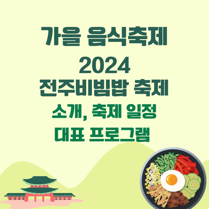가을에 열리는 축제 중에 다양한 먹거리가 있는 음식 축제가 전국 곳곳에서 열립니다. 그중 맛의 고장 전주의 대표적인 음식 비빔밥을 주제로 열리는 2024 전주비빔밥 축제 소개와 축제 일정, 대표 프로그램에 대해 쉽게 정리해 보겠습니다.