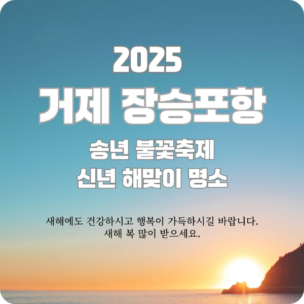 2024년을 마무리하며 2025년의 새로운 희망을 맞이하는 행사가 여러 지역에서 열립니다. 그중 장승포항에서 10번째 송년 불꽃축제와 해맞이 신년 행사가 열립니다. 이 포스팅에서는 신년 해맞이 명소 거제 장승포항 송년 불꽃축제 행사 내용과 이용정보 등을 살펴보겠습니다.