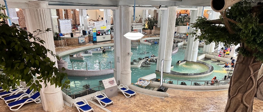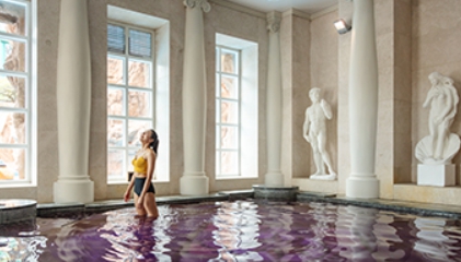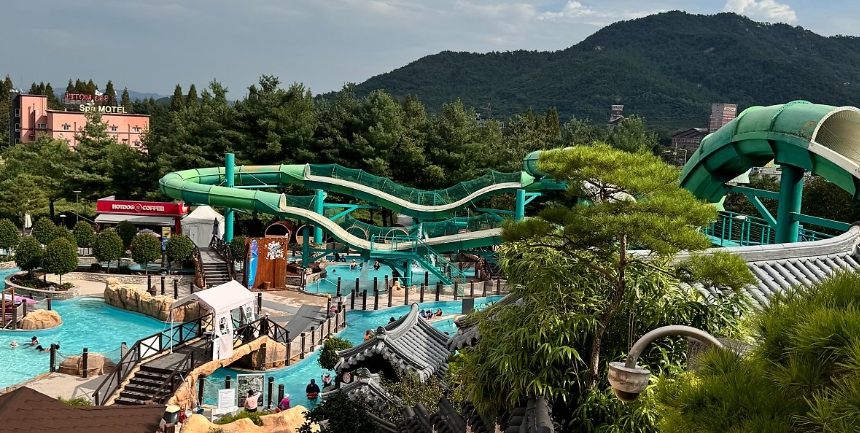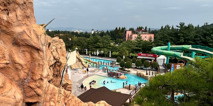빠른 속도로 내려오는 급경사 슬라이드로 짜릿함을 느낀 후, 천천히 흐르는 유수풀에 몸을 맡긴 채 여유를 만끽해 볼 수 있습니다. 시원한 물줄기가 절벽을 타고 떨어지는 폭포수와 25m 길이의 온천수영장도 물놀이 하기에 좋은 장소입니다.
