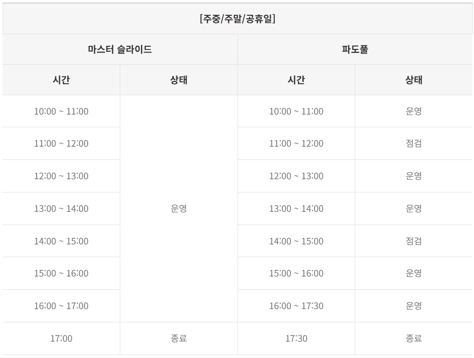 ■ 매표시간 : 워터파크 – 6시~17시 / 사우나 – 6시~18시