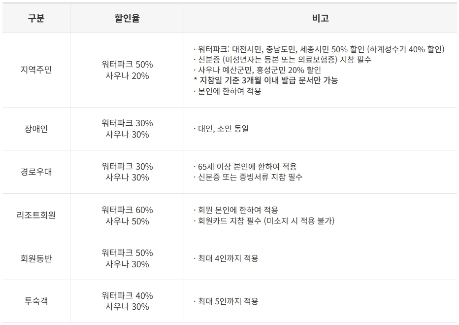 워터파크 할인은 주간에 이용할 때 해당합니다.
