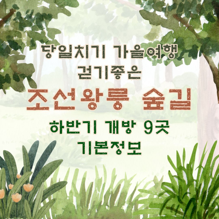 1년에 딱 두 번 한시적으로 개방하는 조선왕릉 숲길이 10월 1일부터 개방되었습니다. 우리나라의 역사와 자연을 동시에 만끽하며 당일치기 가을 여행이 가능한 조선왕릉 숲길 9곳이 어디인지 살펴보고 관람 기본정보들을 정리해 보겠습니다.