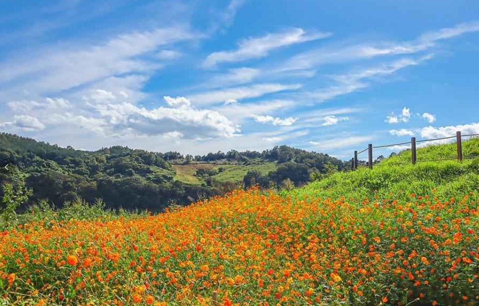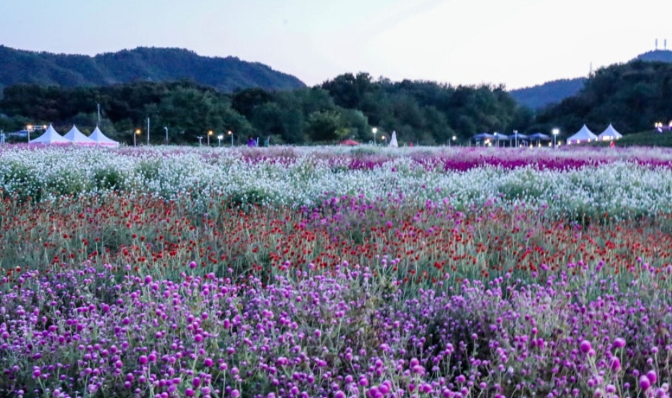 - 천만 송이 천일홍 축제와 핑크뮬리로 유명한 체험 공원