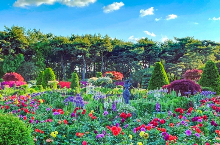 빛솔원, 여왕의 정원, 그리고 하경원에서 꽃과 식물이 펼치는 화려한 꽃 정원입니다.