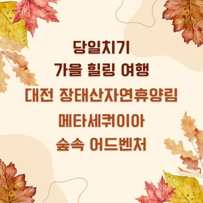 바쁜 일상을 보낸 후 나에게 힐링이 필요하다 느낄 때 당일치기로도 다녀올 수 있는 곳이 대전 서구에 있는 장태산자연휴양림입니다. 산림욕을 즐기며 온전히 가을힐링여행을 할 수 있는 장태산 자연휴양림에 대해 살펴보겠습니다.