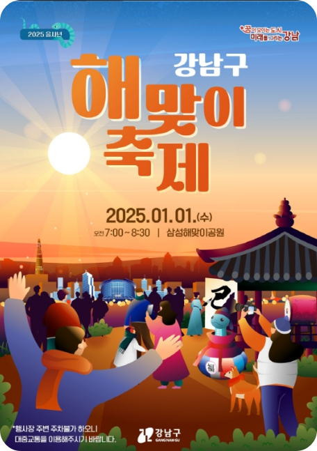 - 삼성해맞이공원에서 맞이 하는 해돋이 행사는 롯데타워와 잠실종합운동장, 올림픽대로, 청담대교 등 서울의 랜드마크를 조망하며 새해의 소망을 기원할 수 있는 장소입니다.