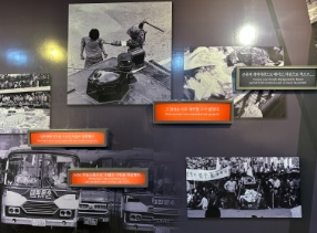 - 민주화 멸망 : 군부독재를 청산하고자 평화적으로 행해졌던 5월 16일 횃불대행진을 소개하는 공간입니다.
