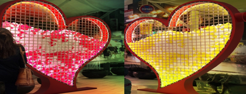 - 다양한 빛이 연출되는 미디어 천장과 빛 반사 조형물을 통해 어두운 길을 화려하게 밝힙니다.