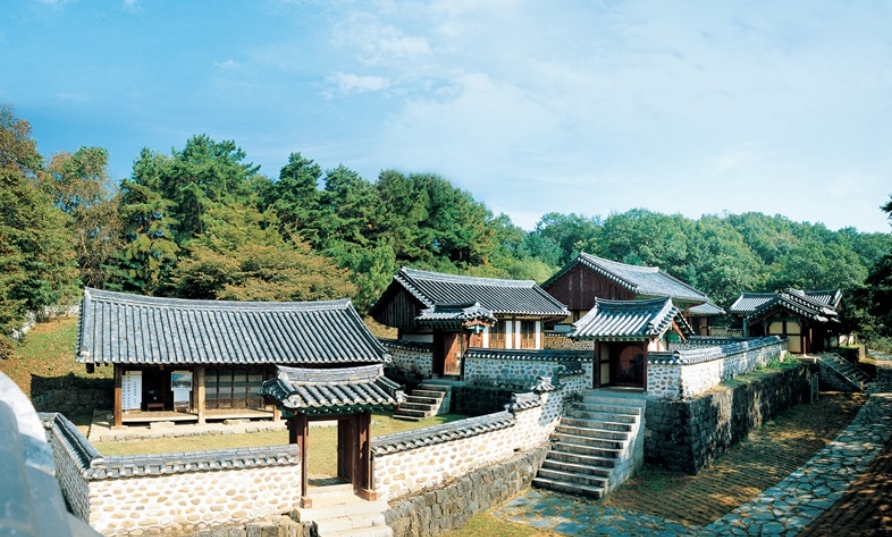 연천 아미산 자락 정상부 못 미쳐 조성된 아늑한 평지에는 연천 숭의전이 자리하고 있습니다. 임진강이 북동방향에서 남서방향으로 굽이쳐 흐르는 모습이 한눈에 조망되는 숭의전은 조선시대에 고려의 왕인 태조, 현종, 문종, 원종과 공신 16명의 제사를 지냈던 고려의 종묘입니다. 6.25전쟁 때 소실되었다가 1973년부터 현재 모습으로 복원되었습니다. 현재 매년 춘, 추계 대제 및 고려 문화제가 개최되고 있는 숭의전에는 종묘를 600년간 지켜온 두 그루의 느티나무가 있는데 보호수로 지정되어 영원토록 숭의전 곁에 머물 수 있게 되었다고 합니다.