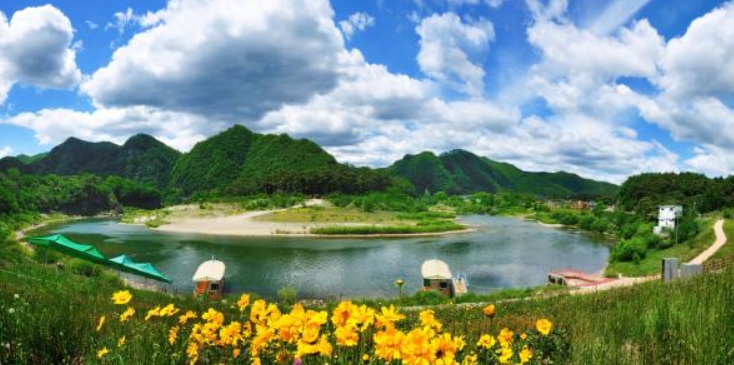 영월 청령포에 가기 전에 한반도를 닮아 불리게 된 한반도 지형을 만나보길 바랍니다. 사계절 내내 특색 있는 경관을 보여주고 있는 이곳은 영월군 한반도면 용정리에 위치해 있으며 서강 지역을 대표하는 경중 중 하나로, 평창강 끝머리에 자리 잡고 있어 굽이쳐 흐르는 한천의 침식과 퇴적 등에 만들어진 지형입니다. 국가지정문화재 명승으로 삼면이 바다인 우리 땅을 그대로 옮겨 놓은 듯한 풍경으로 나서 강변에 아담하게 자리 잡고 있으며 쉽게 볼 수 없는 석양을 볼 수 있습니다.