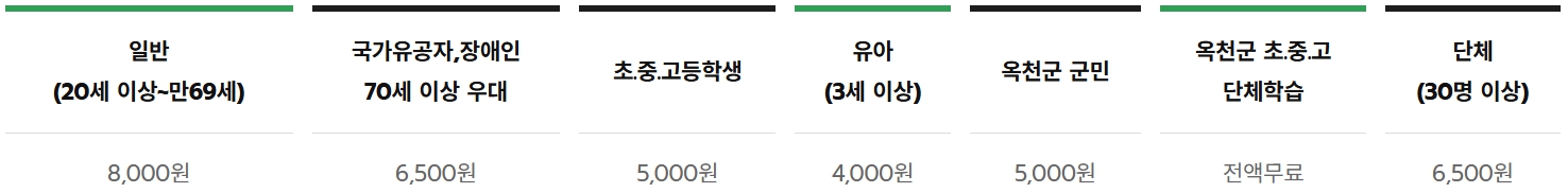 ※ 36개월 이하 무료 / 옥천군 내 초, 중, 고등학생 단체 체험학습 전액 무료