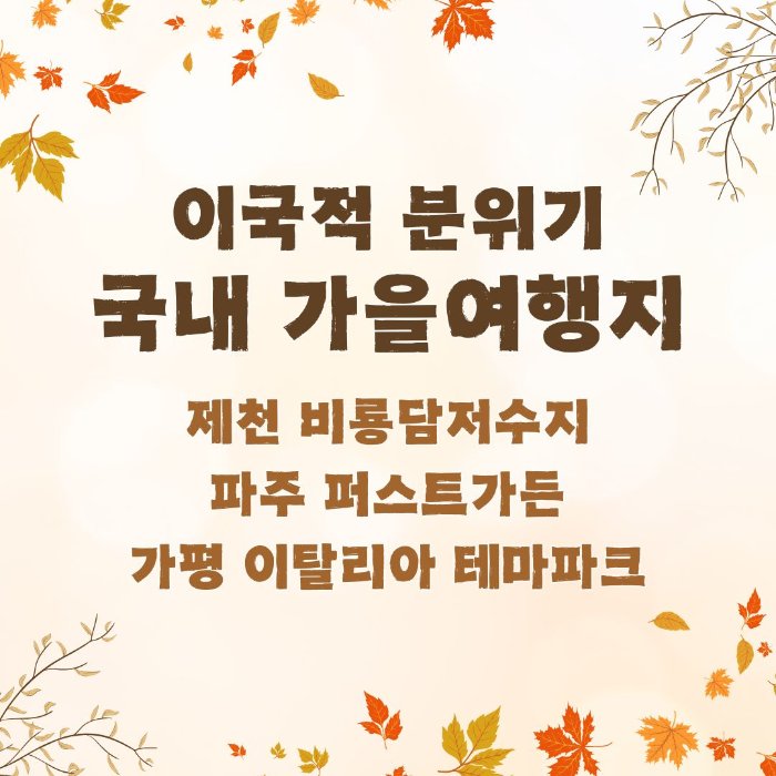 멀리 해외에 나가지 않아도 국내에서 이국적인 분위기의 가을여행을 즐길 수 있는 장소가 많이 있습니다. 이 포스팅에서는 이국적인 분위기에 제천 비룡담 저수지와 파주 퍼스트 가든 가평 이탈리아 마을을 살펴보겠습니다.