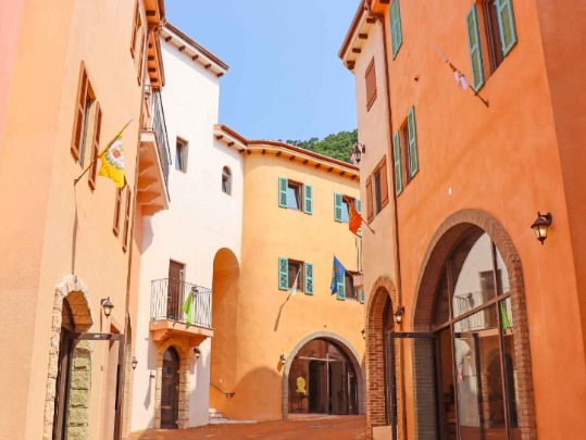이 테마파크는 피노키오의 모험관, 다빈치 전시관, 피노키오 극장, 까라라 갤러리, 이탈리아 문화관 등 다양한 전시관을 갖추고 있습니다. 이 전시관들은 이탈리아 토스카나 지역의 전통 주택과 베네치아 마을을 모티브로 하여 꾸며져 있습니다.