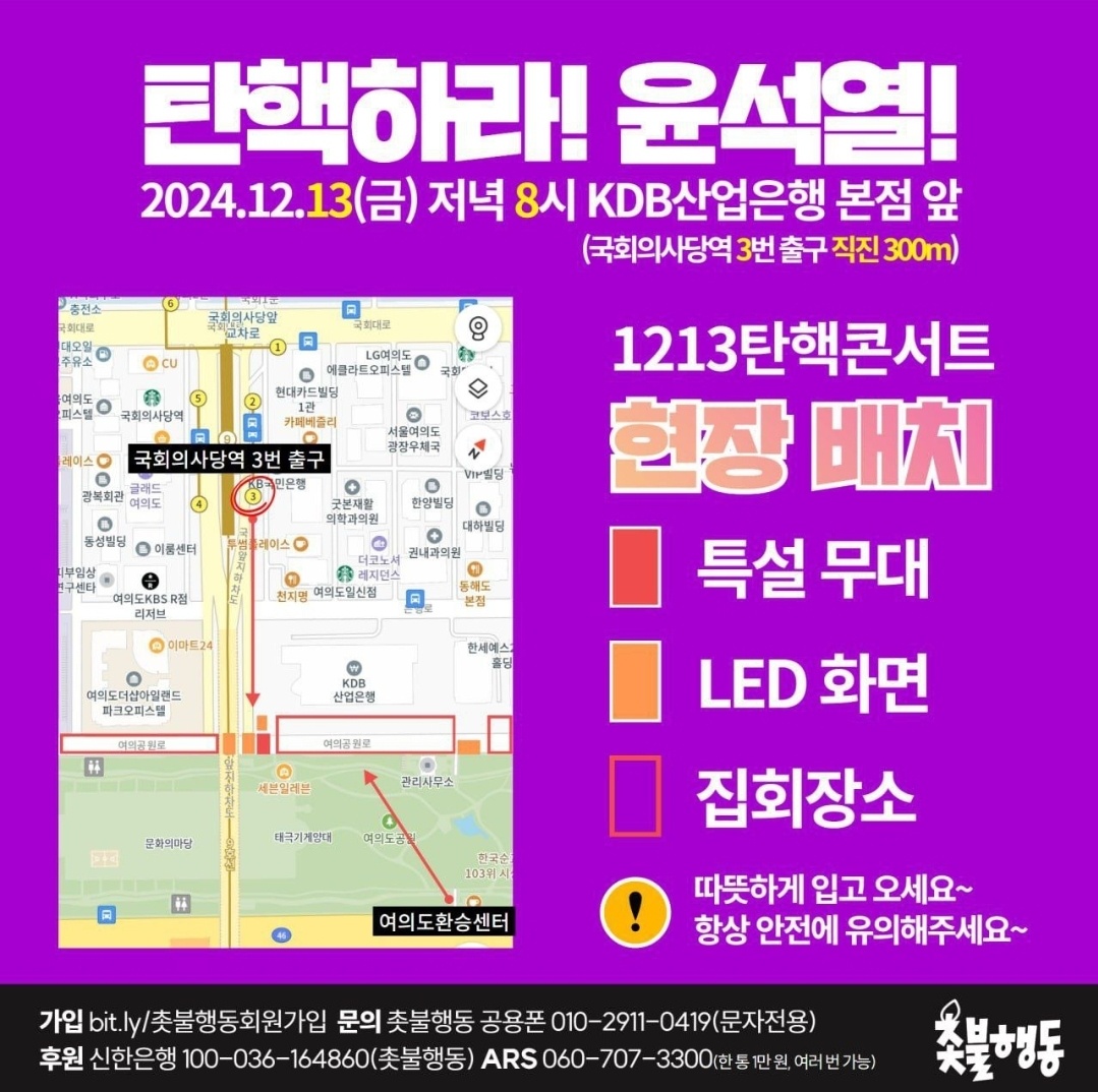 2024년 12월 핫플 여의도 국회앞 촛불과 응원봉이 뭉쳤다. 12/13일 공연 여의도 화장실 위치