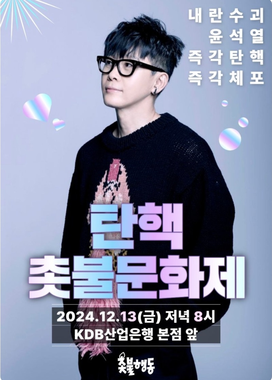 12.3 내란 사태 발생한 지 일주일이 지나가고 있습니다. 국민의 기본권과 민주주의를 유린한 이 상황에 분노한 국민들이 지역 곳곳에서 매일 촛불과 응원봉을 들고 K촛불집회의 진수를 보여주고