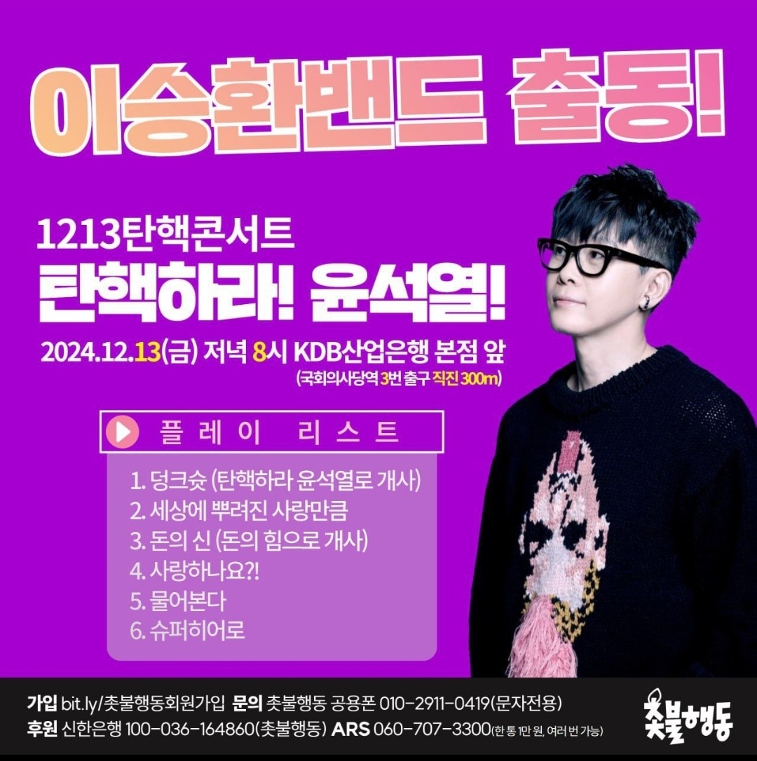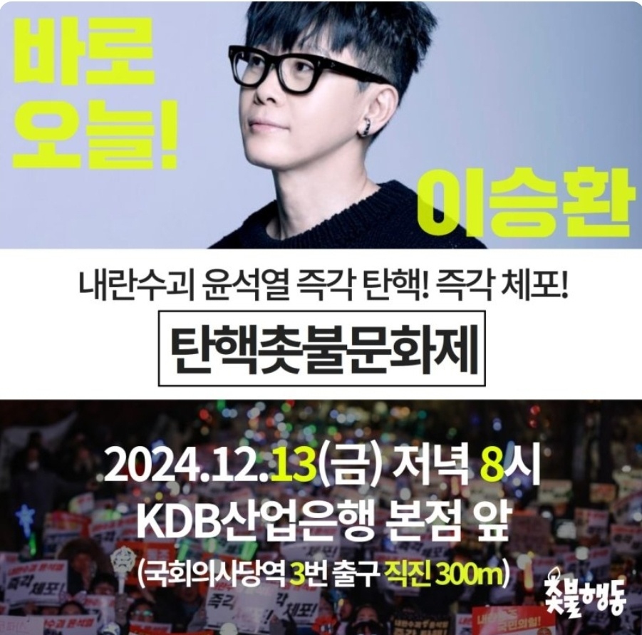 ※ 촛불집회 후 PM 8:00부터 가수 이승환 님과 함께하는 촛불문화제가 진행됩니다.