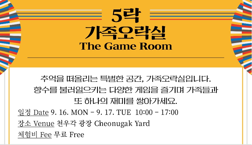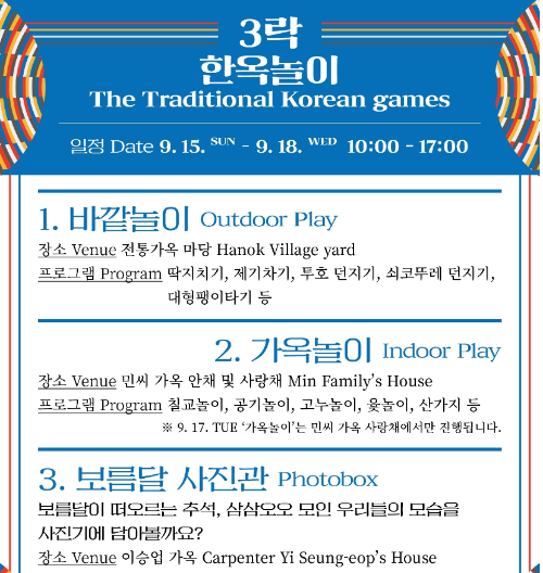 ※9/17(화) 가옥놀이는 민씨 가옥 사랑채에서만 진행됩니다.