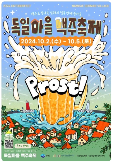 우리나라 경제 발전에 이바지한 파독 광부, 간호사들의 보금자리인 남해 독일마을에서 열리는 축제로 세계 3대 축제인 독일 뮌헨 옥토버페스트를 모태로 독일문화를 체험하고, 정통 독일맥주와 소시지를 맛볼 수 있는 이색적인 축제입니다.