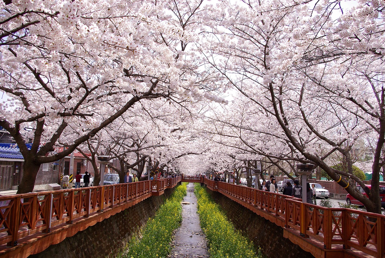 진해의 가장 대표적인 행사 중 하나는 매년 봄, 벚꽃이 대도시를 분홍색과 흰색으로 물들이는 진해 군항제 축제입니다. 4월 초에 열리는 이 축제에는 도로와 구내, 주요 명소에 늘어선 벚꽃이 만들어내는 감동적인 장관을 보기 위해 해마다 수백만 명의 인파가 몰려듭니다. 특히 진해 군항제 대표적인 명소 여좌천은 진해를 병풍처럼 둘러싸고 있는 장복산에서 시작한 작은 도시하천으로 일제강점기에 일제에 의해 지금에 모습으로 만들었습니다. 현재 주변에 벚꽃이 만개한 수천 그루의 벚나무로 장식된 길을 따라 걸으며 꽃잎으로 뒤덮인 환상적인 벚꽃을 감상할 수 있는 곳으로 유명합니다. 진해 군항제는 시각적인 아름다움뿐만 아니라 한국 예술 공연, 전통 음악, 민속놀이 등으로 봄과 자연의 소생을 축하하는 활기찬 축제입니다. 또한 방문객들은 예술 행사에 참여하고, 음식 부스에서 창의적이며 다양한 먹거리들을 맛보고, 매혹적인 계절에 대도시에 스며드는 흥겨운 기운에 흠뻑 빠져볼 수 있습니다. 벚꽃나무 아래에서 인생 샷을 찍고 싶거나 자연의 화려함 속에서 여유로운 산책을 즐기고 싶다면 진해는 많은 것을 제공합니다.