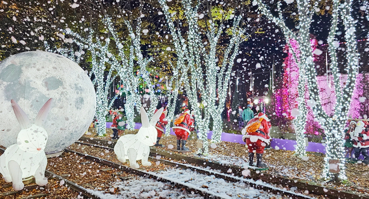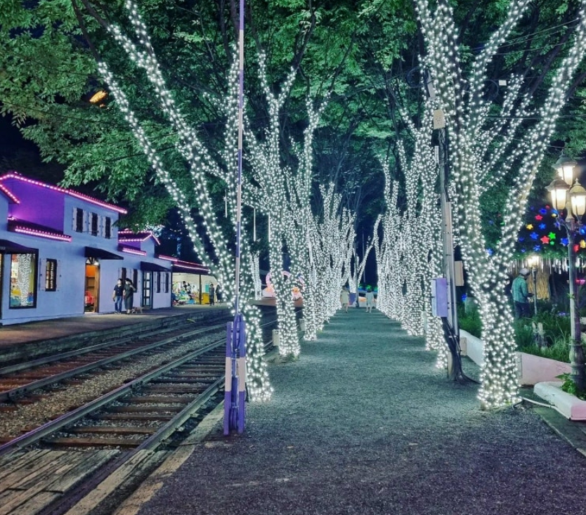 - 다양한 포토존에서 연인과 가족, 그리고 정겨운 사람들과 추억을 담을 사진 한 장, 역장님의 포근함이 있는 간이역존, 날아 갈 듯 천사의 깃털이 담긴 날개존, 금방이라도 화살을 쏘아 줄 큐피트가 나타날 것 같은 큐피트 로드, 연인을 위한 솜사탕같은 프로포즈를 위한 프로포즈 로드 등에서 인생샷을 남겨 볼 수 있습니다. 또한 하늘정원의 일루미네이션 쇼, 아름다운 물결과 다양한 포토존이 존재하는 빛의 숲에서의 추억도 남겨 보시길 바랍니다.