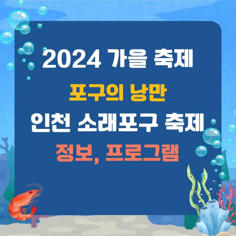 가을이 되면 어김없이 인천 소래포구에서 싱싱한 해산물과 포구의 낭만이 넘치는 축제를 즐길 수 있습니다. 벌써 24번째 열리는 소래포구 축제, 이번 글에서는 축제일정과 어떤 프로그램들이 있는지 알아보겠습니다.