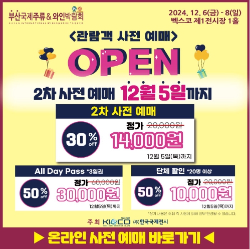 올해 마지막 달 12월에 부산 벡스코에서 국제주류&와인박람회가 열립니다. 1차 사전예매는 10월에 마감이 되었고 지금은 2차 사전예매를 진행하고 있는데요. 이 포스팅에서 2024 부산국제주류&와인박람회 관람정보 와 전시품목, 예약정보와 이벤트를 정리해 보겠습니다.