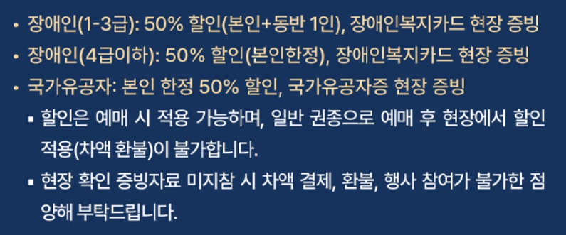 - 예매하신 본인 입장이 원칙이며, 타인 양도가 불가합니다.